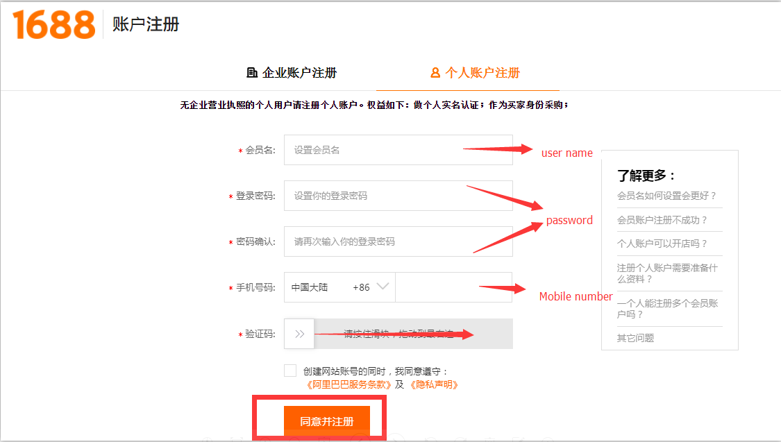 1. Registration:(You had better register in taobao first and use same user name to login)
