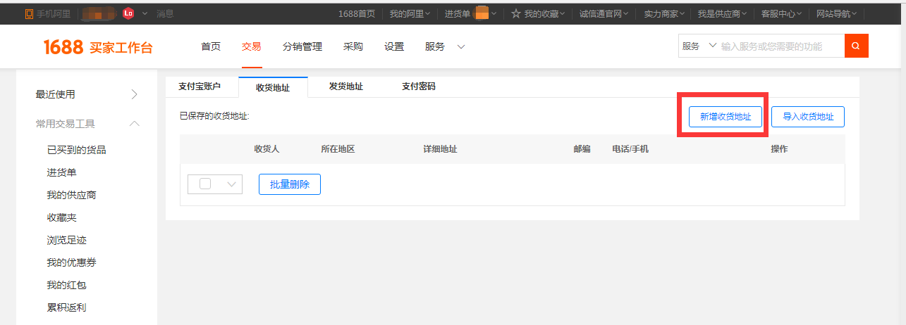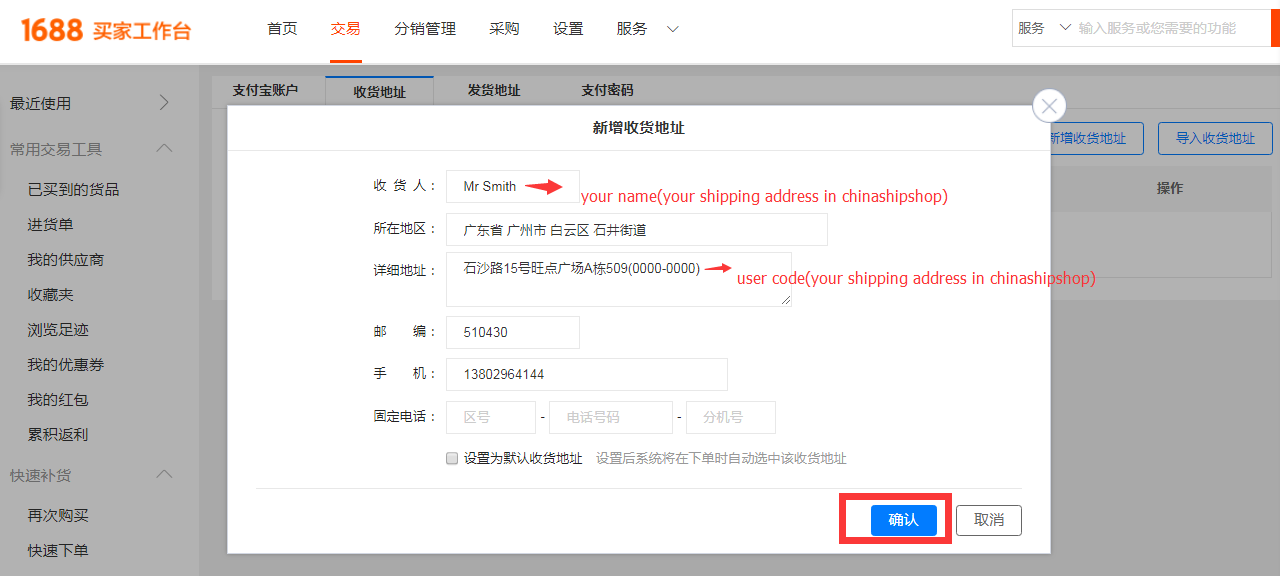 4. Registration is done,Click the red square to add the shipping address: